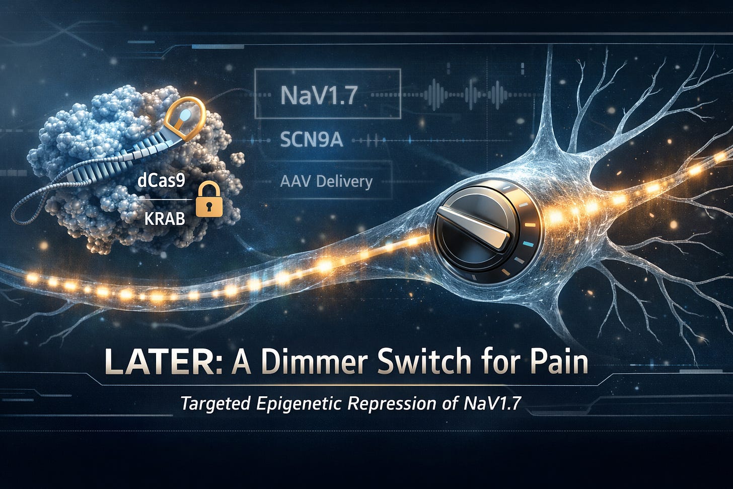That is the promise of LATER, short for Long-lasting Analgesia via Targeted Epigenetic Repression. In preclinical work, LATER uses programmable gene-targeting tools to temporarily silence a key pain gene, SCN9A, which encodes the NaV1.7 sodium channel, without cutting DNA. The goal is long-term pain relief after a single treatment, with a risk profile that looks more like “gene regulation” than “permanent gene editing.”